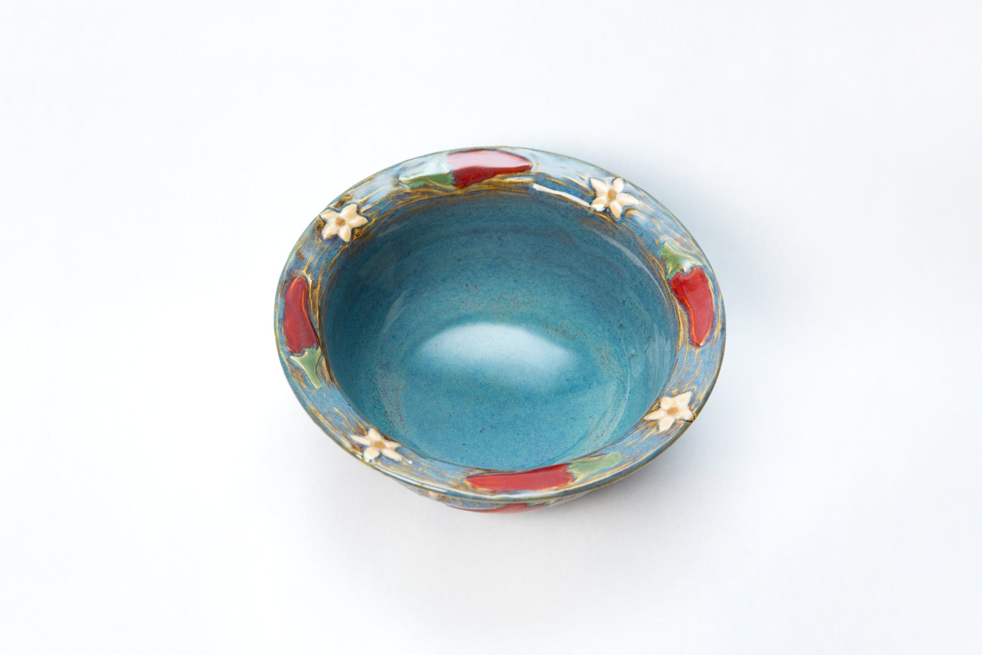 Blue Chili Bowl w/Carved Chilis and Flowers