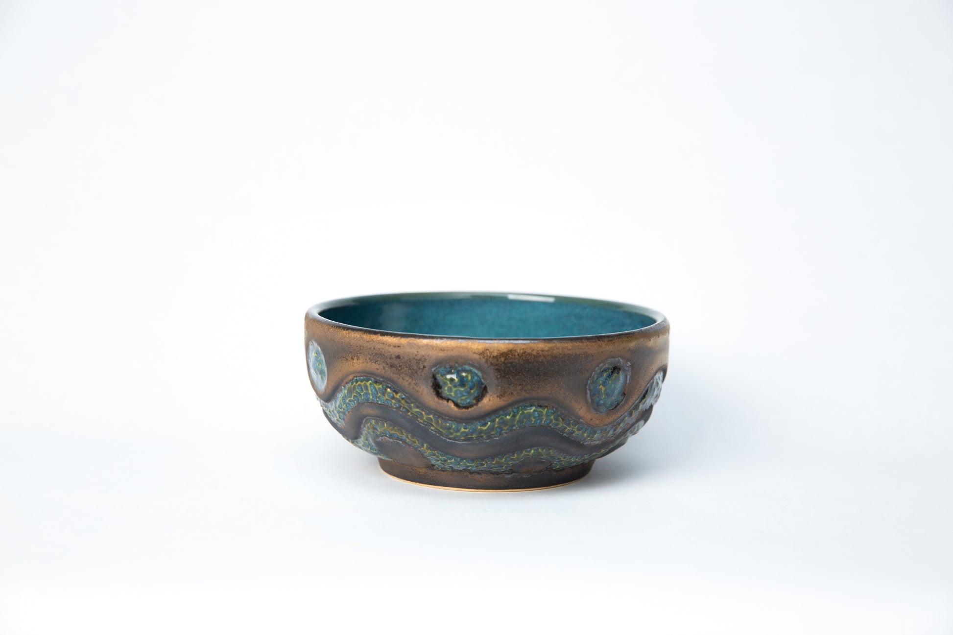 Blue and Gun Metal Carved Salsa Bowl